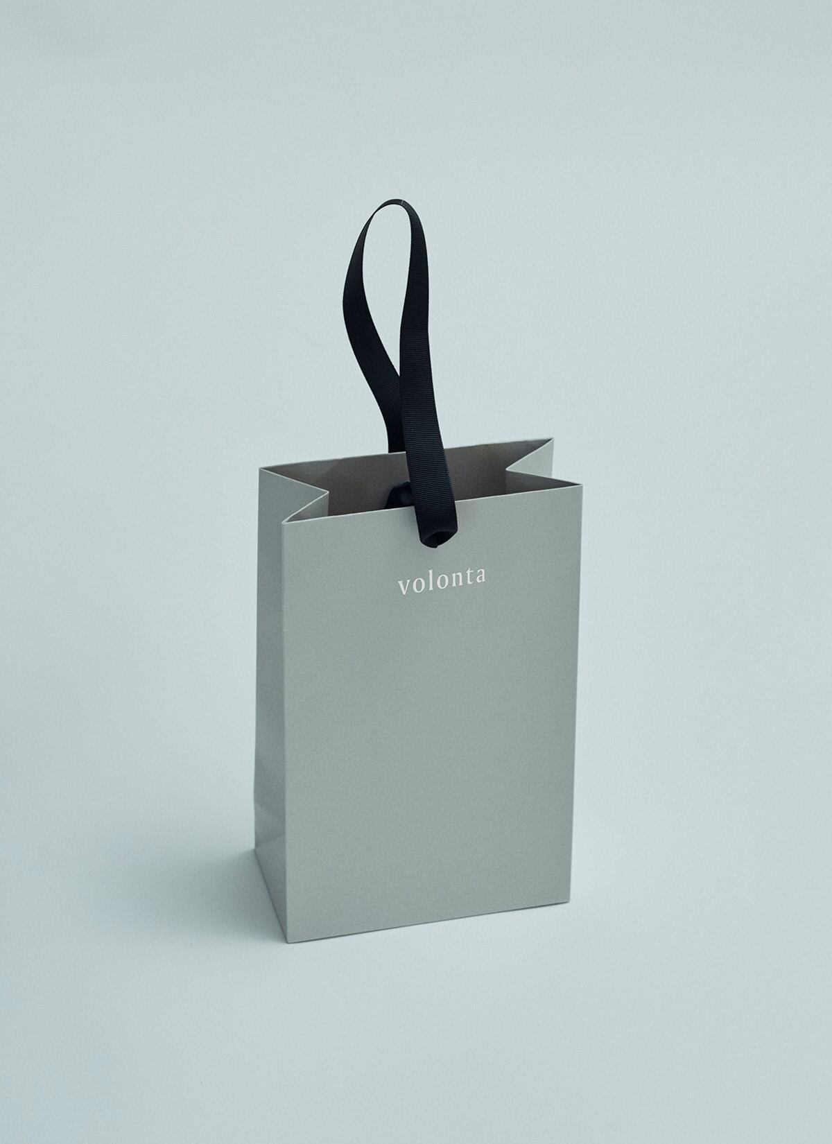大切な人への贈りものをさらに素敵に。 シンプルなデザインに箔押しのロゴが入った volontaオリジナル紙袋です。 サイズ:横15cm / 高さ24cm / マチ00cm